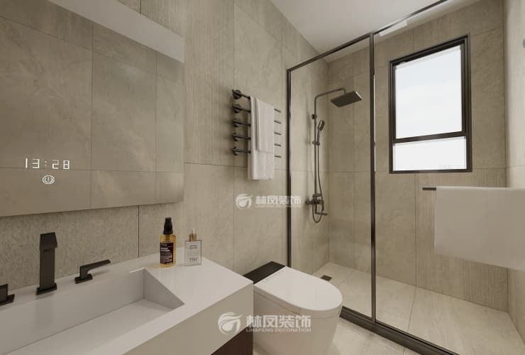 各个功能区之间的交通流线简洁流畅,从进门到洗漱区、再到淋浴区和如厕区,使用者可以方便地移动,不会出现相互干扰的情况。