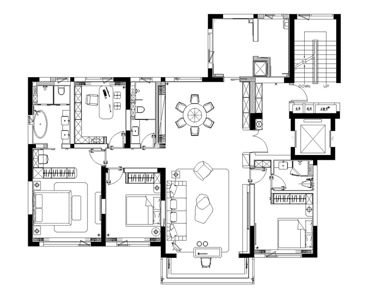 本方案的卫生间采用了干湿分离都手法。方便了人在固定时间段内对卫生间的需求。