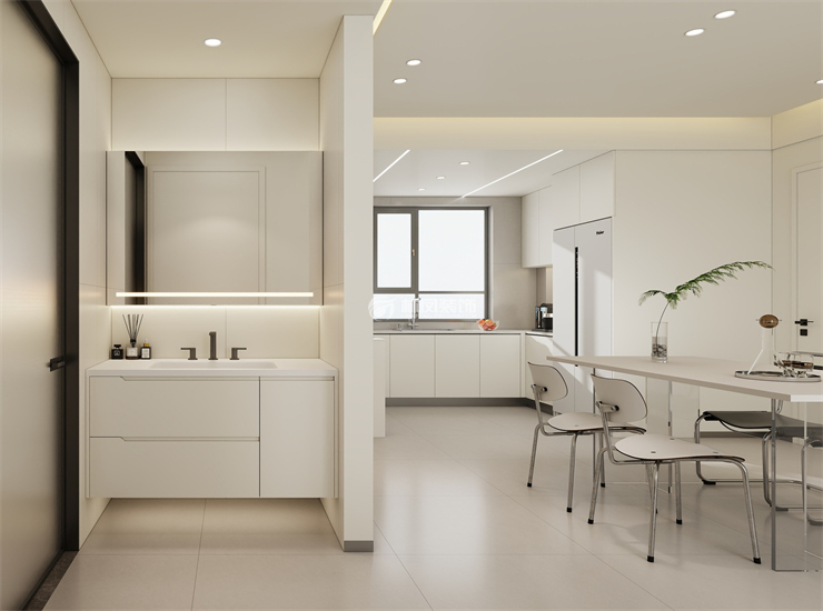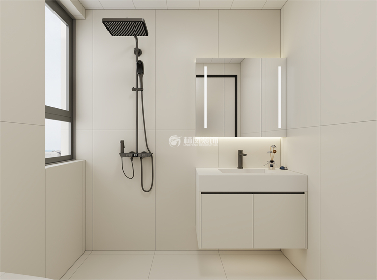 卫生间铺设大板砖让卫生间显得更加大气,配合上浴室柜和马桶的选择,迎合全屋整体的设计风格。