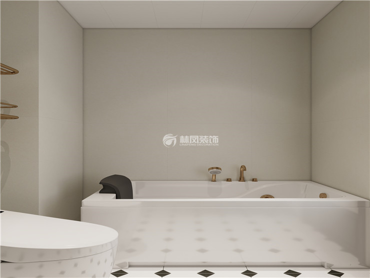 两个卫生间都采用了金属门作为分隔,圆弧玻璃和卫浴的金色边框,把法式风格展现的淋漓尽致,主卫定制了整墙的大台面,收纳空间和操作空间都十分宽敞,搭配墙面贴600*1200MM瓷砖,使卫生间在视觉效果上看起来更宽敞大气,卫生间的整洁程度也获得了很大提升,极大地方便了房主生活中的日常起居。