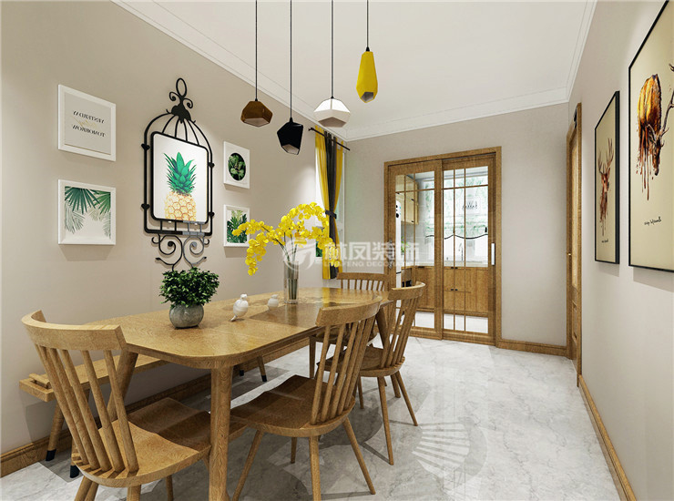 原木色的餐椅与原木色的餐桌搭配,现代与自然元素想结合,温暖的色调一致搭配。让整个餐厅温暖起来。让家居生活更轻松随性。