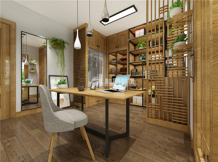 休息室设计在了书房的里面,宽大的空间采用了原木色的茶桌以及边柜,再配上花草,使闲暇生活更享受,不显得呆板,拘谨