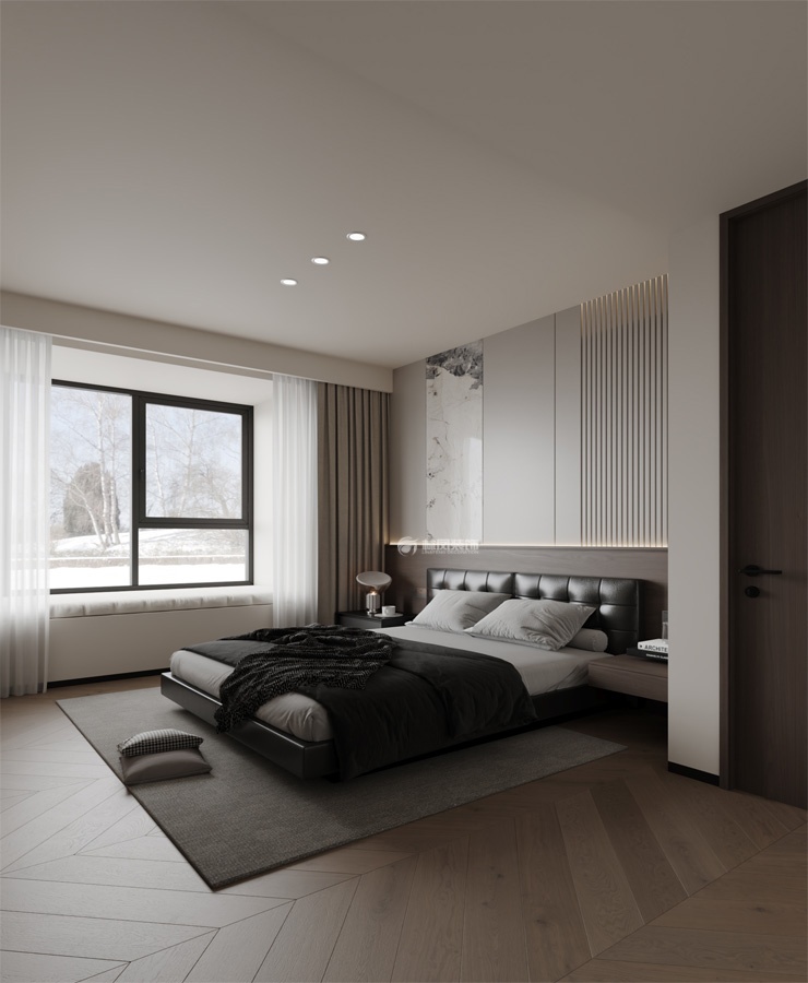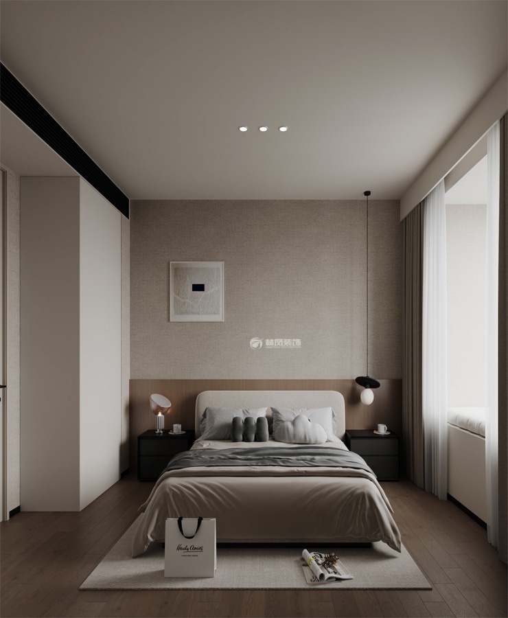 轻奢风的卧室通常会选择简洁的线条和温馨的色彩,搭配舒适的床垫和细节处理。例如,白色或米色的墙壁搭配深色的床铺和窗帘,再配上金属或皮革的家具和灯具,就能很好地体现出轻奢风的风格。