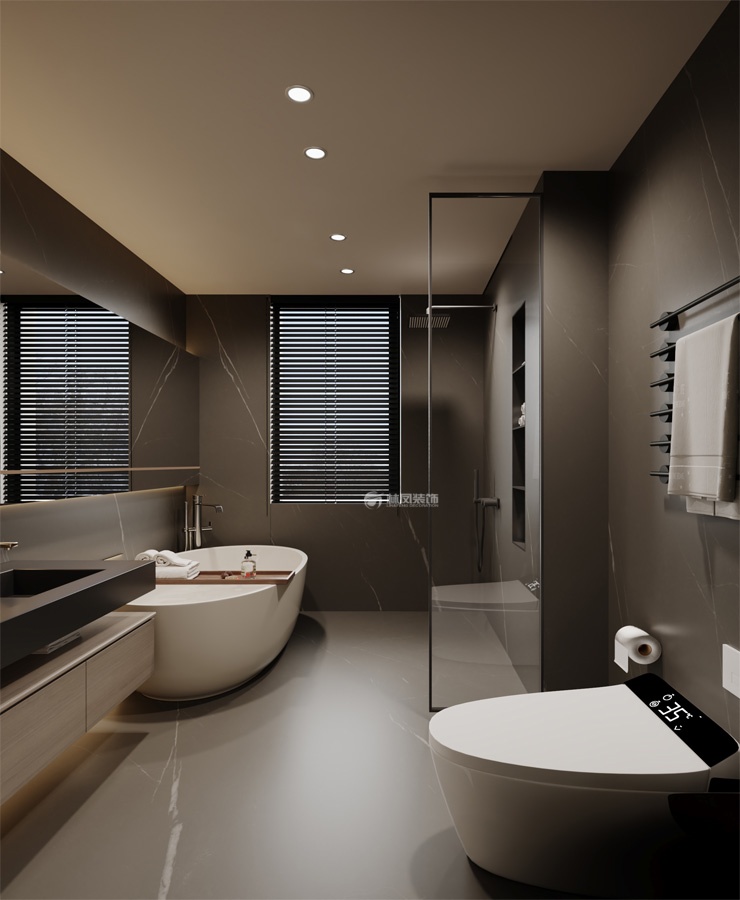 通常会选择高档的材质和简洁的设计。例如,使用黑色或白色的瓷砖搭配金属的橱柜和卫浴设备,就能很好地体现出轻奢风的风格。