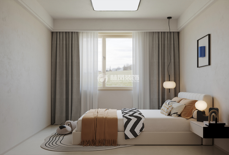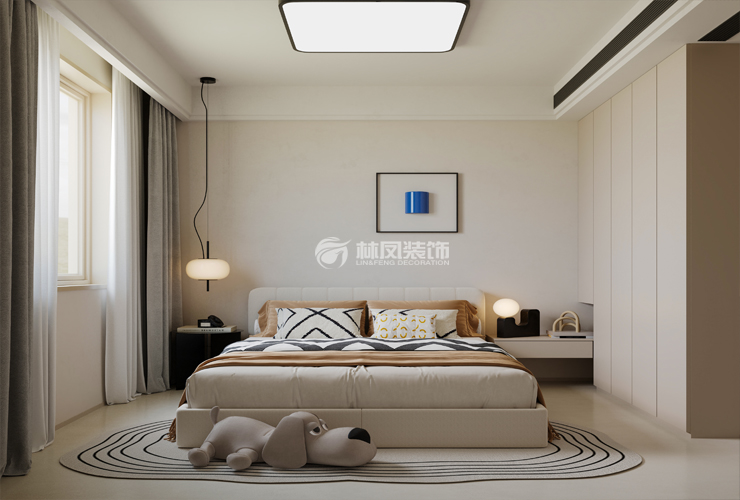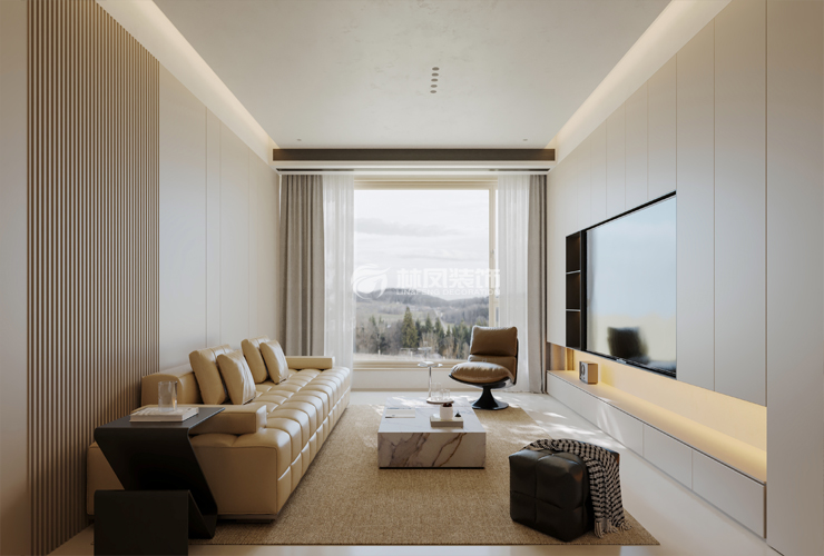 以米白色、浅咖色等柔和中性色为主色调,营造温馨、宁静氛围,利于放松身心。搭配少量深棕色、灰色等沉稳色彩,增加视觉层次感,局部点缀亮色抱枕、装饰画,为空间注入活力。墙面多采用质感细腻的乳胶漆或简约墙板,触感平滑且易维护。地面铺设柔软地毯,脚感舒适,增添温暖氛围。