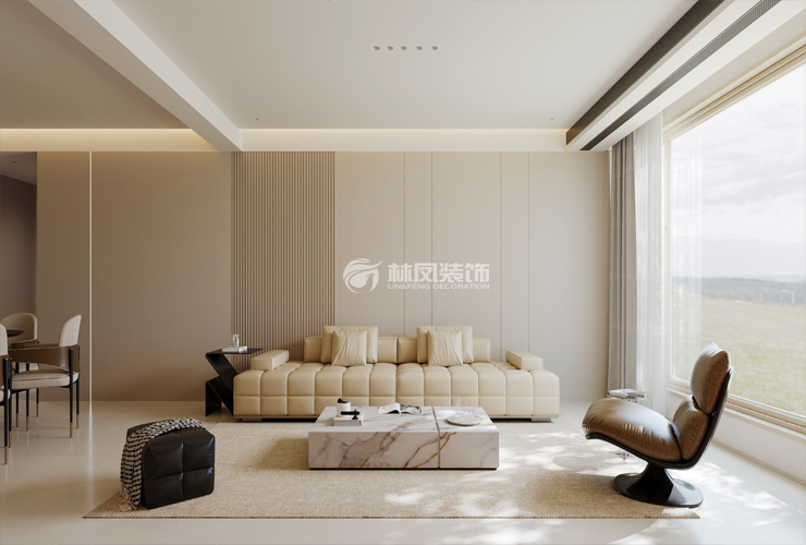 采用开放式布局,打破传统空间界限,使客厅与相邻空间自然过渡,增强空间通透感与互动性。合理规划家具摆放,确保动线流畅。整体色调以浅色系为主,如米白色、浅米色等,营造出温馨、柔和的氛围。