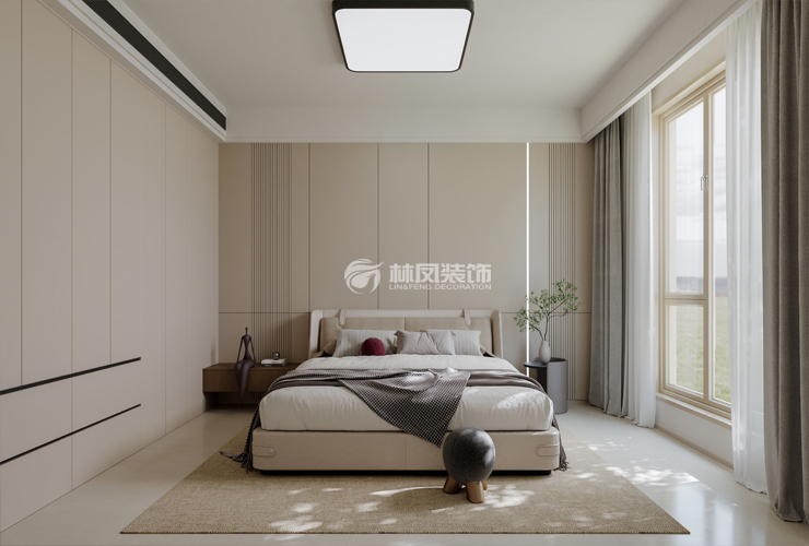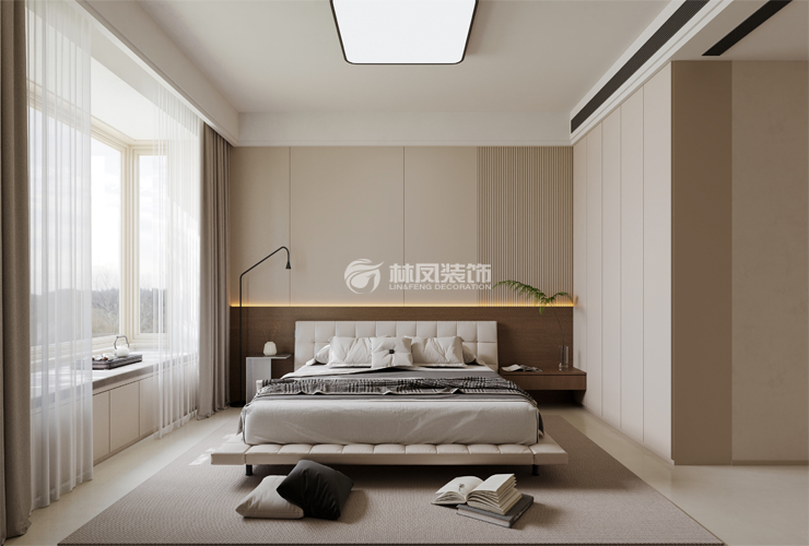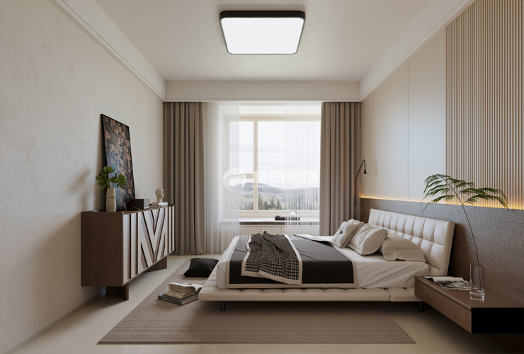 以米白色、浅咖色等柔和中性色为主色调,营造温馨、宁静氛围,利于放松身心。搭配少量深棕色、灰色等沉稳色彩,增加视觉层次感,局部点缀亮色抱枕、装饰画,为空间注入活力。墙面多采用质感细腻的乳胶漆或简约墙板,触感平滑且易维护。